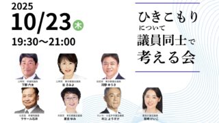 COMOLYの活動 ひきこもりについて議員同士で考える会 開催趣旨近年、社会課題として注目される「ひきこもり」。支援現場や当事者の声はあるものの、制度や政策に十分に反映されていない側面があります。 本イベントでは、所属政党の枠を超えて議員が集まり、ひきこもりの実情必要な支援政治としてできることにつ... 2025.09.30 COMOLYの活動イベント新着NEWS